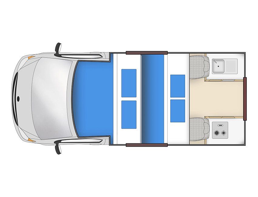 Der Camper ist ideal für Familien mit 2 Kindern und eine preisgünstige Alternative zum Motorhome für 4 Personen. Er verfügt über eine gemütliche Sitzmöglichkeit und eine kleine Küche. Es können bis zu 2 Kindersitze oder Sitzerhöhungen eingebaut werden. Allerdings dürfen Kinder unter 6 Monaten leider nicht mitfahren. Selbstverständlich ist das Fahrzeug mit einem Feuerlöscher, Airbags und Sicherheitsgurten ausgestattet.
