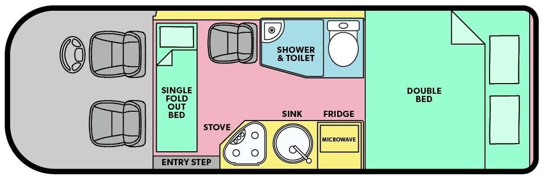 Der Jayco Voyager ist das perfekte Premiumfahrzeug für 2 Personen. Ausgestattet mit Dusche, WC und einer Kitchinette lässt es keine Wünsche offen für einen spannenden Roadtrip durch Australien. Für die Sicherheit sorgen Feuerlöscher, Rückfahrkamera, Reserverad und Wagenheber. Ein Fahrradträger für 2 Räder kann optional hinzugebucht werden.